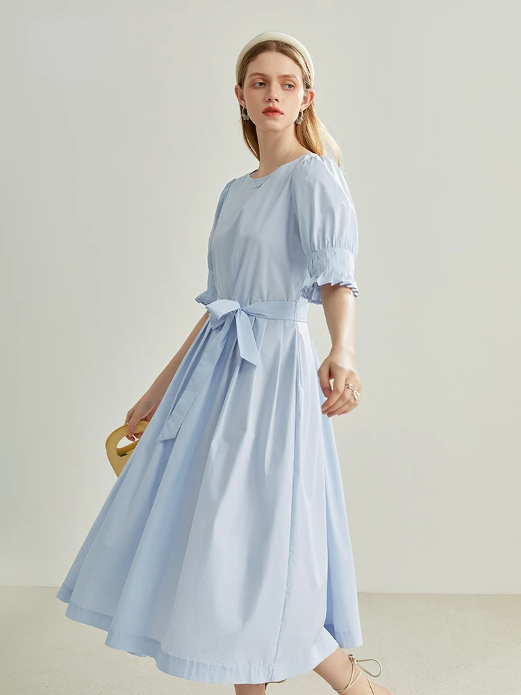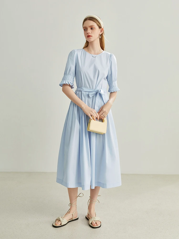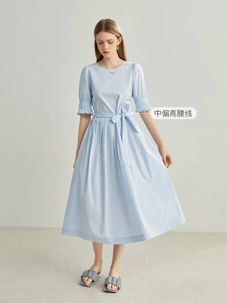 Платье с пышными рукавами FSLE Design, плиссированное платье-пуловер с круглым вырезом, женское платье, Новинка лета 2022