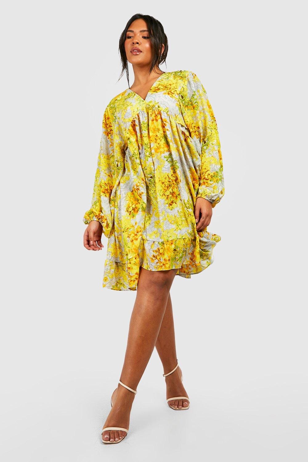 Платье с цветочными обрюками по низу Boohoo, желтый
