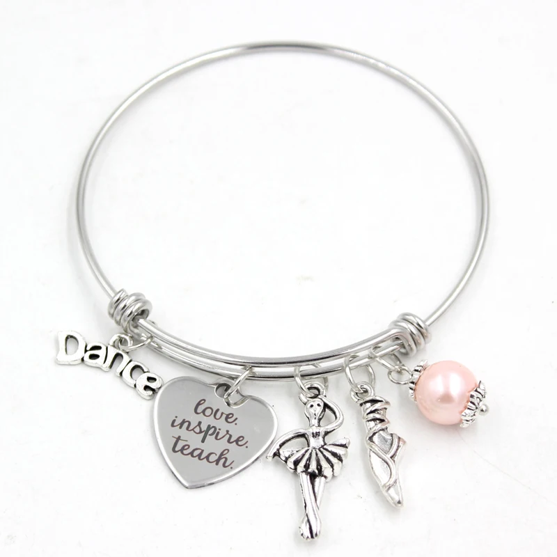 Stainless Steel Wire Bangle Ballet Shoes Zinc Alloy Dance Ballerina Charm Bracelet Bangle Gifts Party Jewelry Bijoux Pulsera