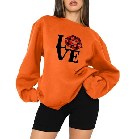 Aueoeo Shirts for Women Crew Neck Sweatshirt Women Casual Full Sleeve Round Neck Tops Loose Shirts Blouse Valentine s Day Print Graphic Sweatshirt