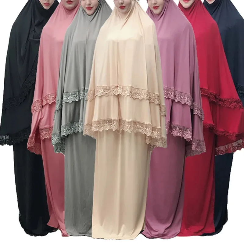 Платье-хиджаб женское из 2 частей, мусульманская молитва, Арабская верхняя абайя, одежда для Рамадана, Женский костюм для поклонения на Ближ...