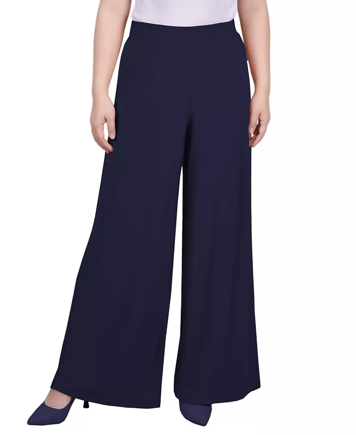 Укороченные брюки-палаццо с завышенной талией на резинке, в размерах Petite и Petite Short NY Collection, синий
