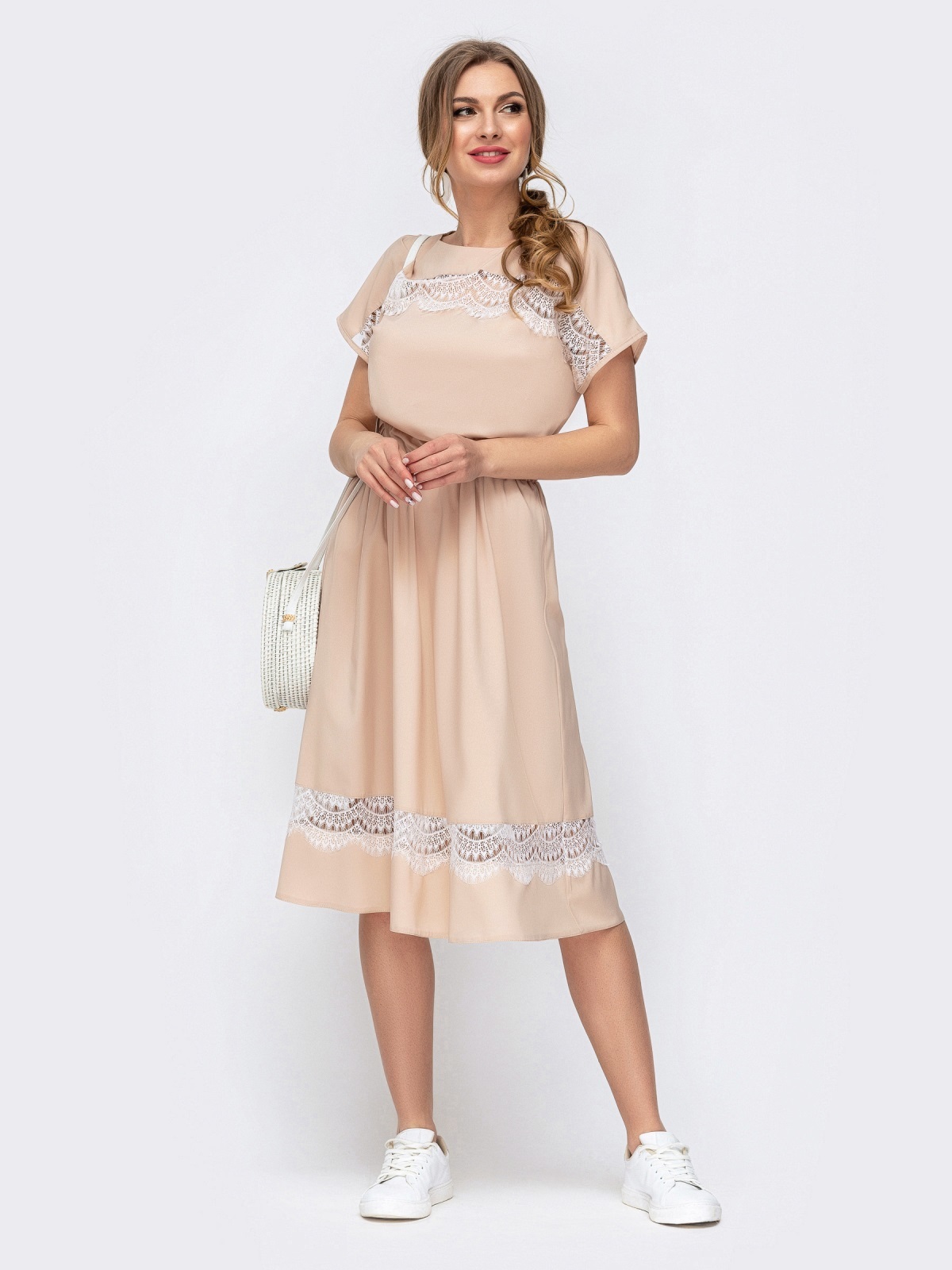 [html]Платье из струящегося софта с контрастными вставками из кружева. В поясе предусмотрена эластичная деталь.На модели представлен 44 размер.длина по спинке – 115 см;длина рукава (от горловины) – 22 см.Материал: Soft Состав: 50% вискоза, 50% полиэстер Растяжимость: нет Замеры в 44 размере: ширина изделия по груди - 53 см, по талии - 42 см (в растянутом виде), по бёдрам - 60 см Замеры в 46 размере: ширина изделия по груди - 57 см, по талии - 44 см (в растянутом виде), по бёдрам - 62 см Замеры в 48 размере: ширина изделия по груди - 61 см, по талии - 46 см (в растянутом виде), по бёдрам - 64 см На фото: Рост модели: 174 см. Параметры: 83х60х90.[/html]