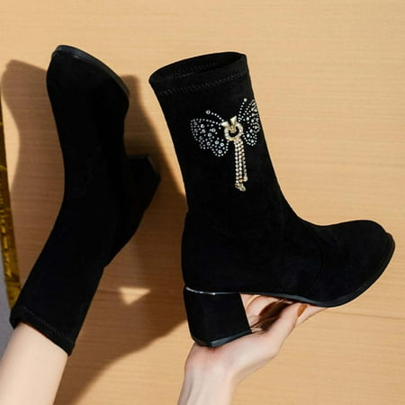 Tdoqot Winter Boots for Women- Mid-Heel Christmas Gifts Warm Chunky Heel Women s Mid Calf Boots Gold 39