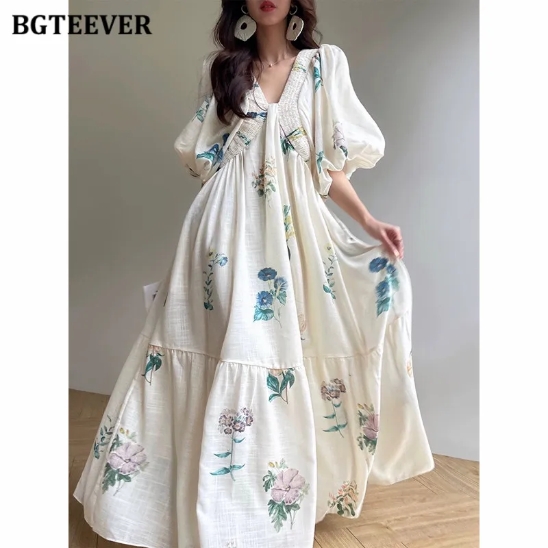 Платье BGTEEVER женское ТРАПЕЦИЕВИДНОЕ с V-образным вырезом и пышными рукавами