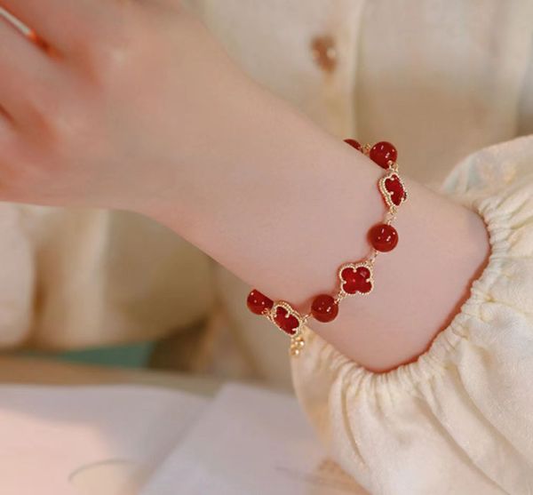 novel four leaf grasst fashion bracelet luxury jewerly designer for woman 18k rose plated silver shell women gold chain men fashion jewelry, Black