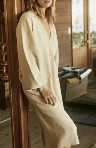 Платье Free People Bring The Drama Платье миди/макси Мягкая вязка в рубчик с V-образным вырезом Подол цвета слоновой кости NWT, Цвет слоновой кости