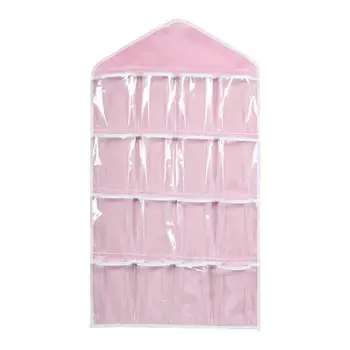 16 Pockets Clear Over Door Hanging Bag Shoe Rack Hanger Underwear Socks Bra Closet Storage Tidy Organizer (Pink)