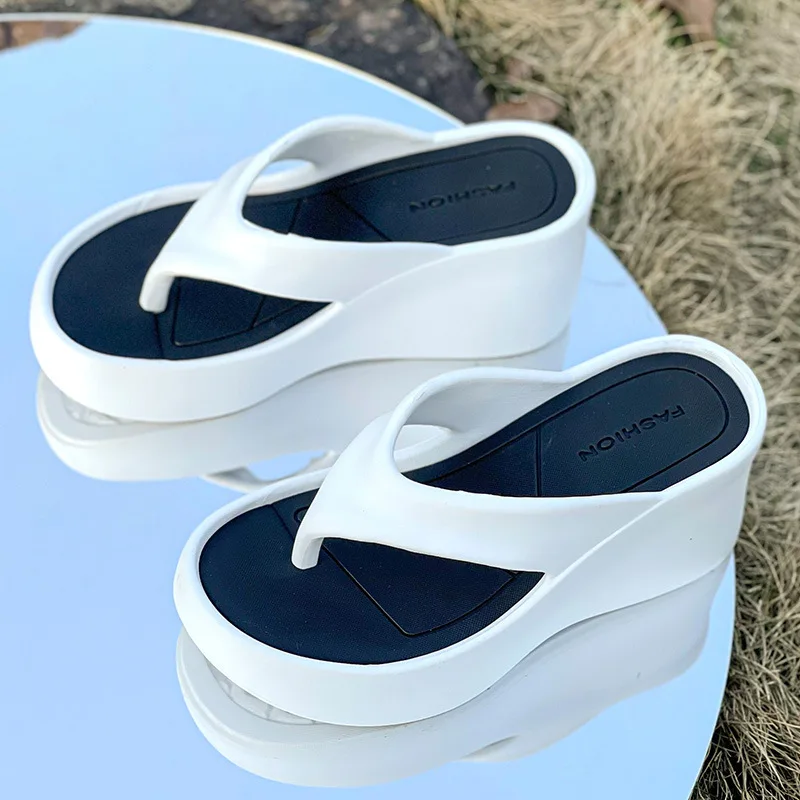 Летние женские шлепанцы, уличные тапочки на танкетке на толстой подошве, увеличивающие рост каблука, сандалии на платформе, женская пляжная обувь