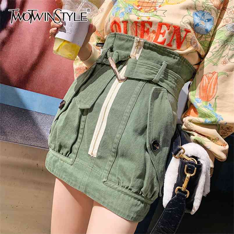 Casual Denim Skirt For Women High Waist Hit Color Patchwork Pocket Mini A Line Skirts Female Fashion Clothing 210521, Green