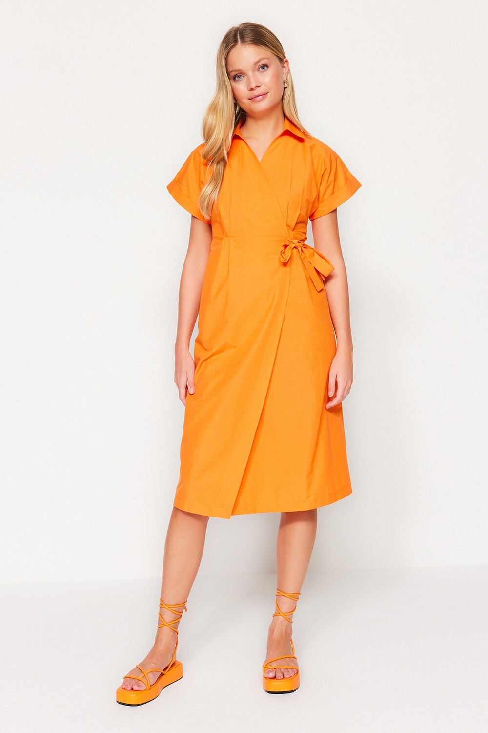Платье Trendyol двубортное с поясом, оранжевый