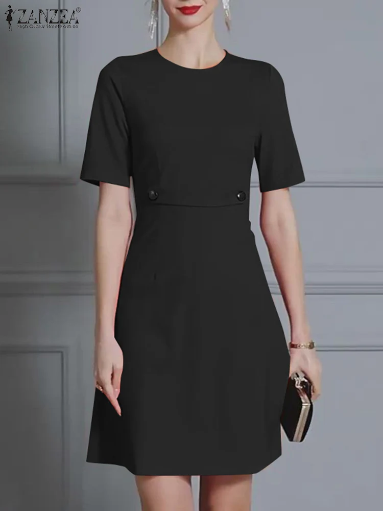 Платье ZANZEA женское с круглым вырезом, повседневное однотонное элегантное модное офисное платье до колена, с коротким рукавом, лето 2024