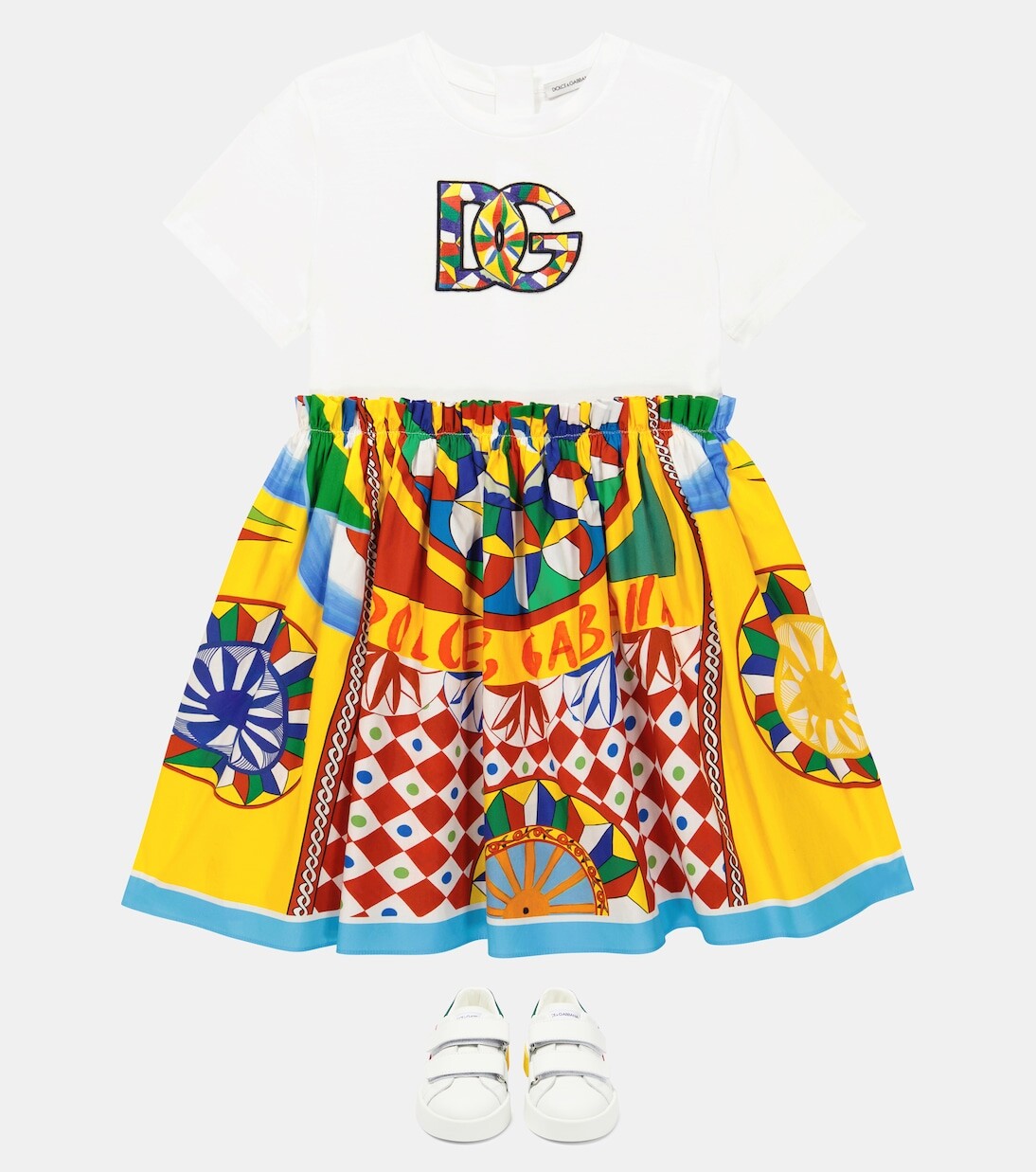 Платье carretto из поплина и джерси Dolce&Gabbana Kids, мультиколор