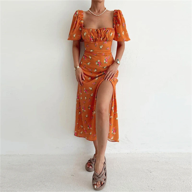 Платье hirigin женское с цветочным принтом, пляжный сарафан в стиле бохо, с коротким рукавом, квадратным вырезом, с завязкой, с высоким разрезом,...
