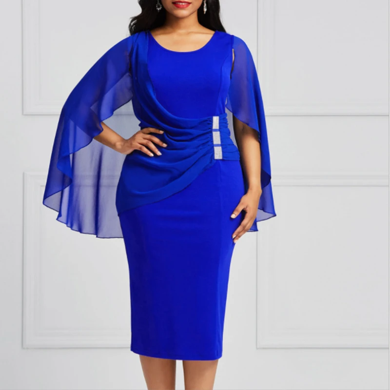 Платья больших размеров, женская одежда, элегантное шифоновое платье, свадебное гостевое платье, модная женская накидка, Коктейльные Вечер...