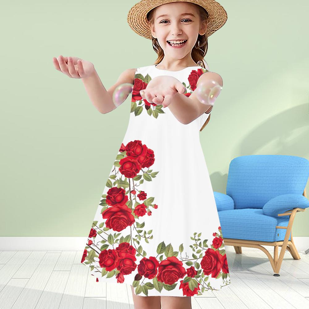 Платья для девочек с 3D-принтом, детское платье принцессы без рукавов, платье-майка с 3D-принтом и розой с шипами 140 белый