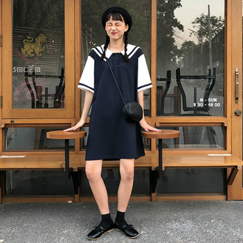 Платья женские весенне-летние однотонные с матросским воротником в японском стиле для студентов новые модные вечерние милые женские униве...