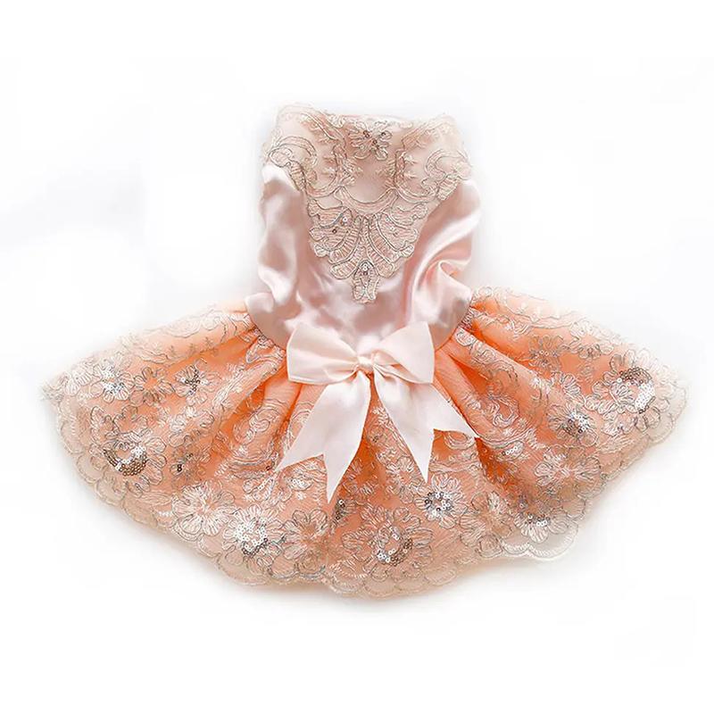 Платья цвета шампанского для маленьких собак, для девочек с бантом, роскошное свадебное платье для кошек и собак с многослойной вышивкой цветов XS розовый
