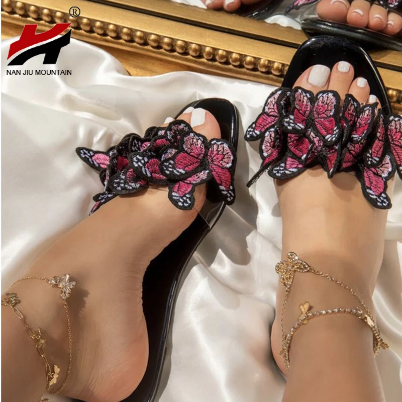 NAN JIU MOUNTAIN 2021 Summer Woman Sandals Fashion Flat Slippers Open Toe Butterfly Outdoor Shoes Plus Size 41