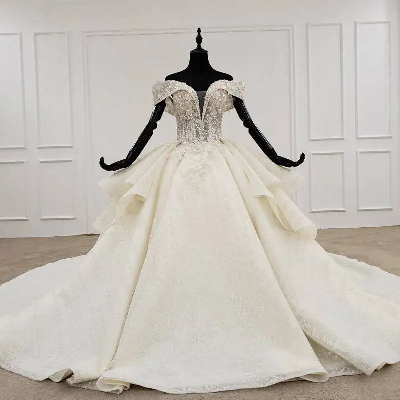 Jancember Htl1247 Boat Neck Short Sleeve White Heavy Embroidery Fabric For Wedding Dress