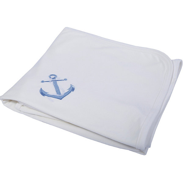Поверхность пледа одинаково ровная и гладкая с обеих сторон. Материал приятен на ощупь, не вызывает аллергии и пропускает воздух. Ткань хорошо держит форму. Плед украшен вышивкой якоря.