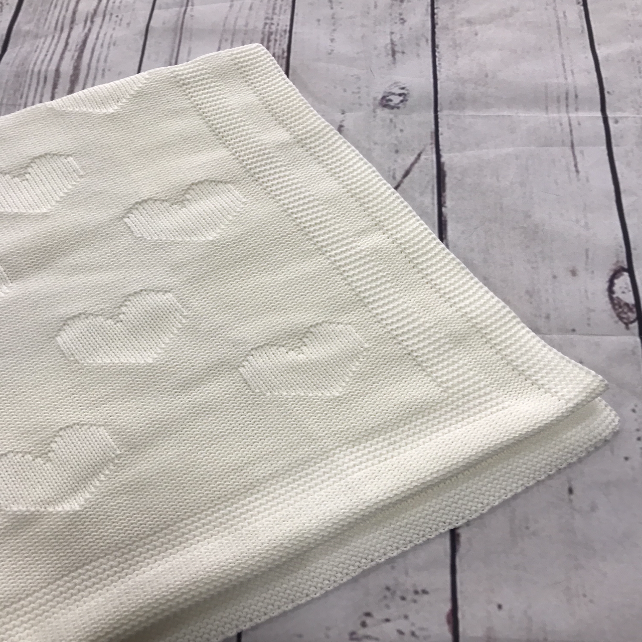 Плед вязанный (90% хлопок, 10% акрил) сердца молочные 95*75 см, Белый
