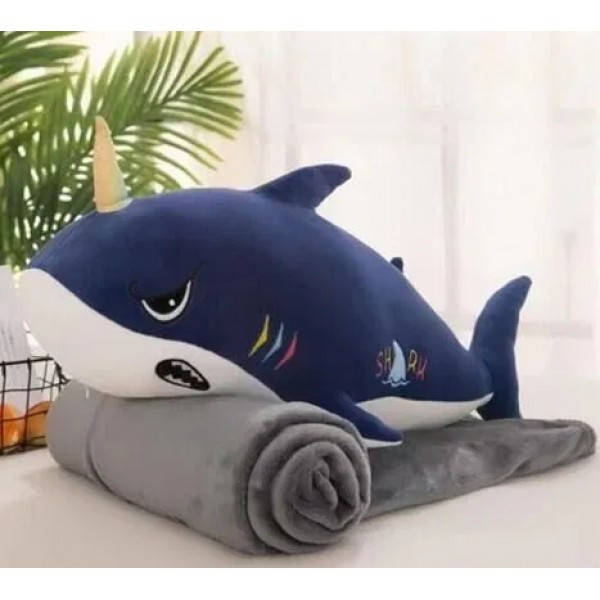 Плед - игрушка, подушка 3 в 1 акула, Синий
