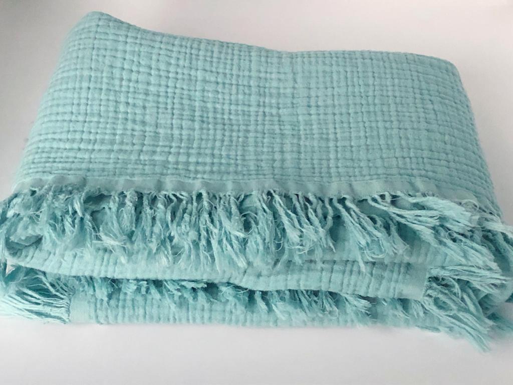 Плед муслиновый жатка с бахромой мятный Lukoshkino
