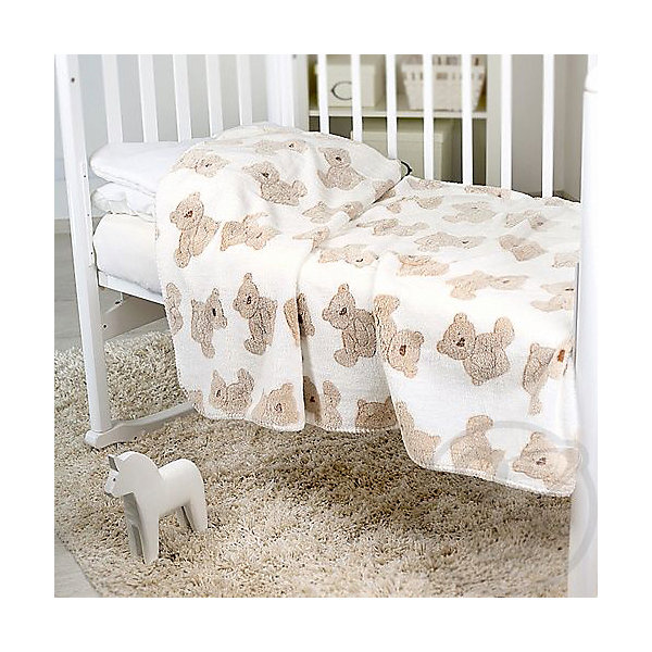 Плед-покрывало Мишки 100х118 Velsoft 2-стороннее оверлок, Baby Nice, бежевый/белый