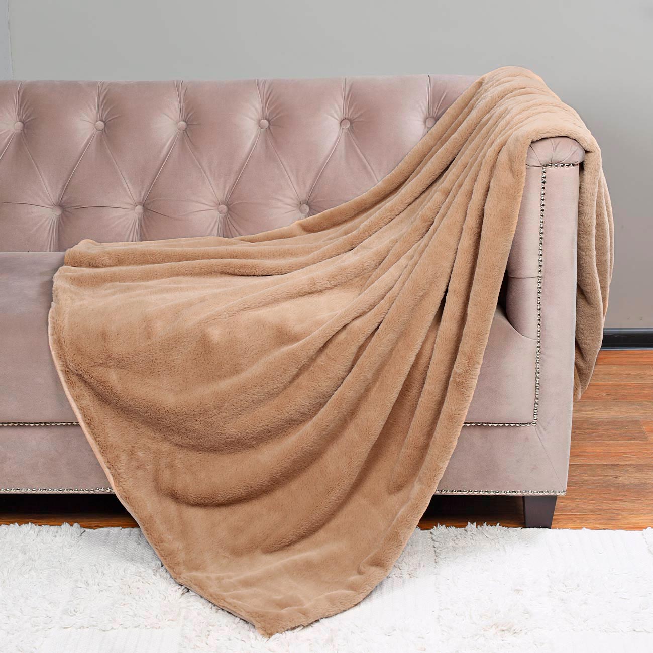 Плед, 140х190 см, искусственный мех/вельвет, коричневый, Shaggy