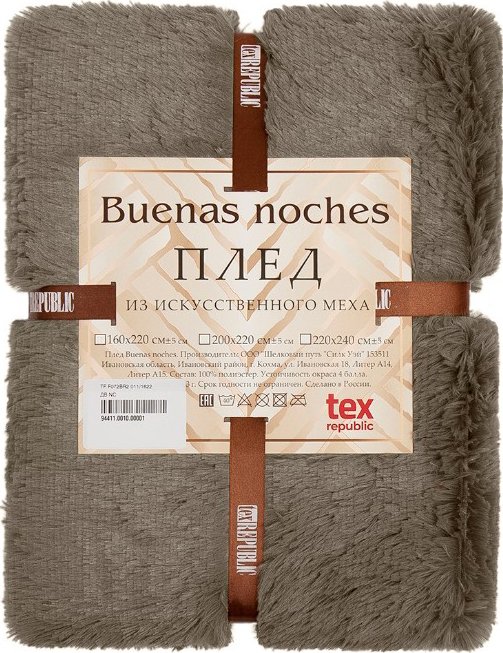 Плед Buenas Noches Длинный ворс Искусственный мех 160x220 94411 (коричневый)