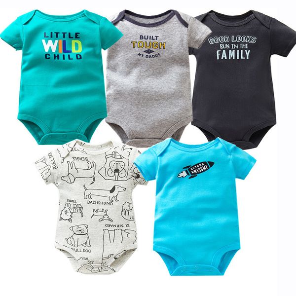 5 pcs/lot baby bodysuits cotton infant jumpsuit short sleeve newborn baby clothing 2018 summer baby girls boys clothes 6-24month, Blue