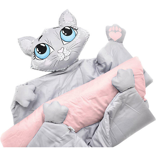 Плед с необычным дизайном выполнен в образе доброй зверушки. Дополнен объемной подушкой в форме головы кошки и лапками. Мордочка нарисована художниками вручную. Уютное покрывало подходит для сна, отдыха и в качестве украшения спального места.