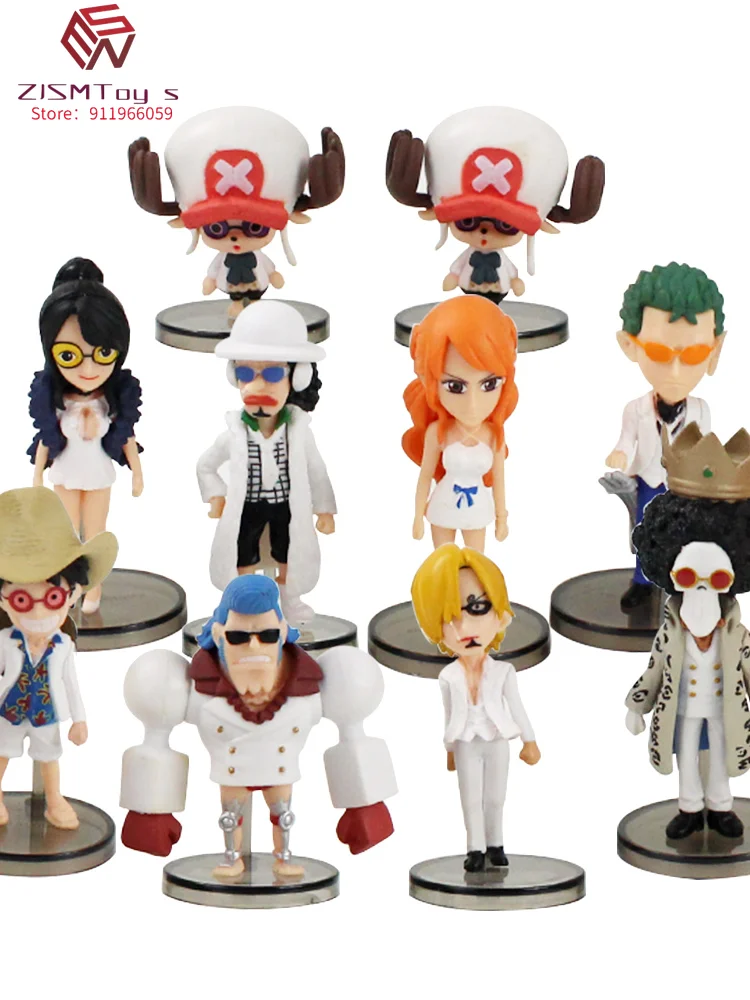 10pcs/lot One Piece Figures Luffy Nami Robin Chopper Sanji Franky Usopp Q Ver. Mini Dolls Anime PVC Model Toys