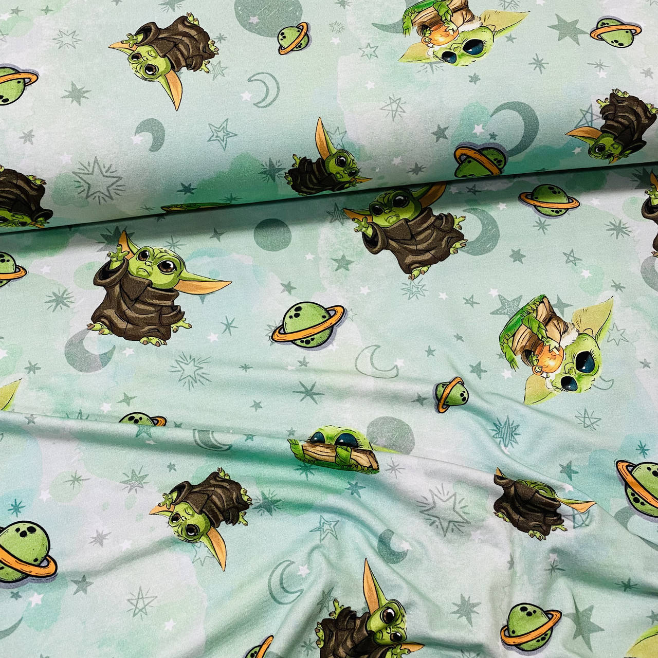Стрейч кулир Малыш Йода Состав 95% хлопок 5% эластан для футболок шортиков платьев лосин, Разные цвета