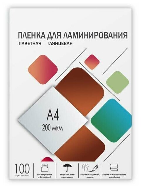 Пленка для ламинирования Гелеос 200мкм, 216x303 (A4), 100 шт., глянцевая (LPA4-200)