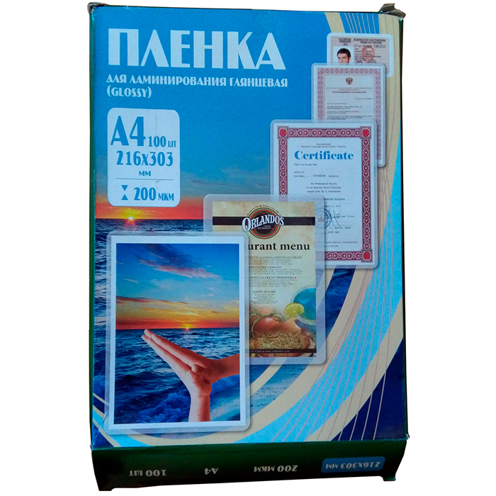 Пленка для ламинирования Office Kit 200мкм, A4, 100 шт., глянцевая (PLP216*303/200)