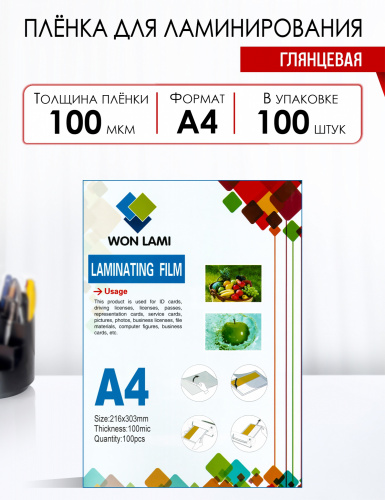 Пленка для ламинирования Won Lami 100мкм, 216x303 (A4), 100 шт., глянцевая (7681)