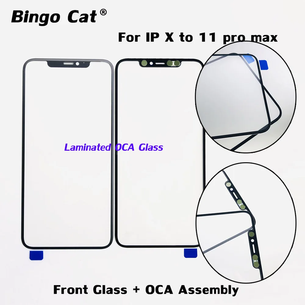 Пленка OCA 5 шт., ламинированное внешнее стекло для замены экрана iPhone X, XS, 11, 12 pro max, ЖК-экрана, стекло для повреждений + OCA, запасные части