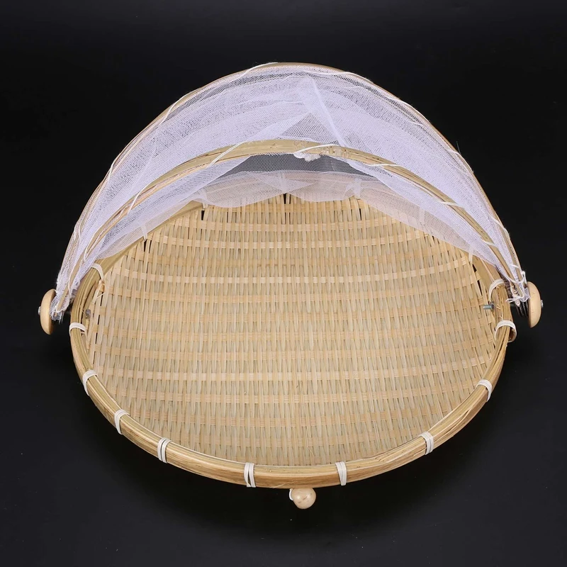 Плетеная корзина для пикника ручной работы, 2 шт., пылезащитная корзина для фруктов, овощей, хлеба, плетеная корзина с марлей