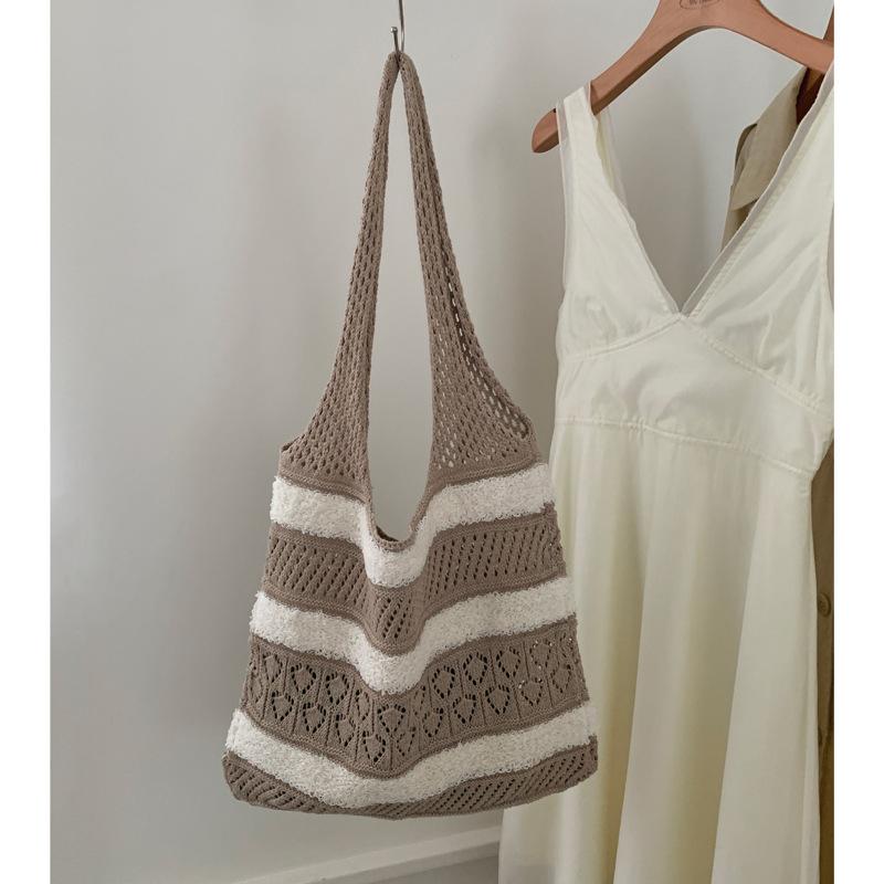 Плетеная плюшевая полая большая вместимость на плечо приморский отпуск пляжная сумка-тоут на плечо для покупок 59*38*2