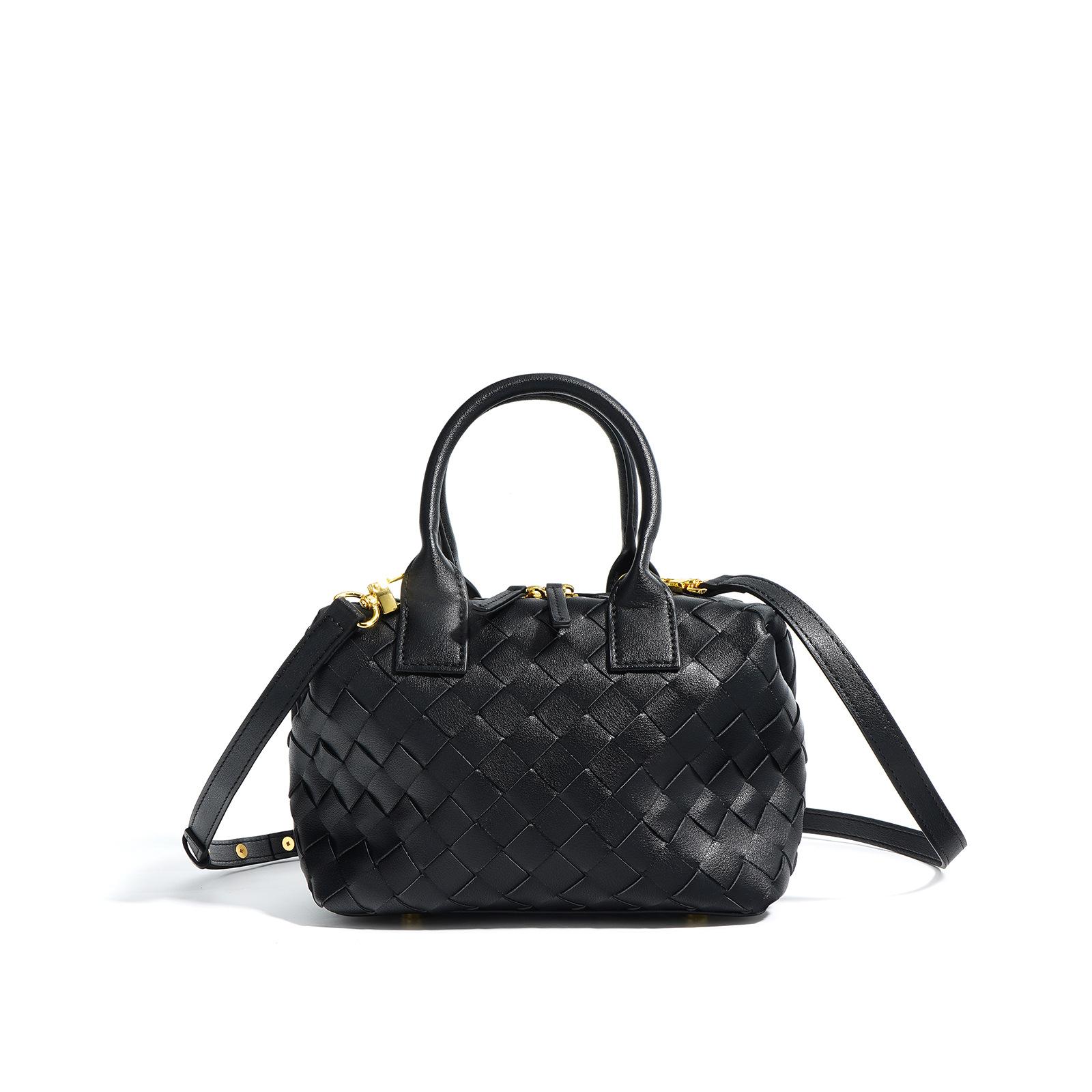Плетеная сумка из коровьей кожи Модная сумка-тоут Кожаная наплечная сумка Ручная сумка для повседневного использования чёрный