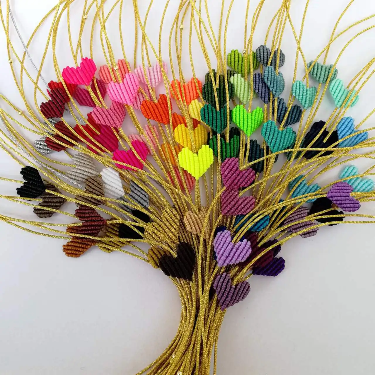 Плетеный браслет в богемном стиле с сердечками, 75 карамельных цветов