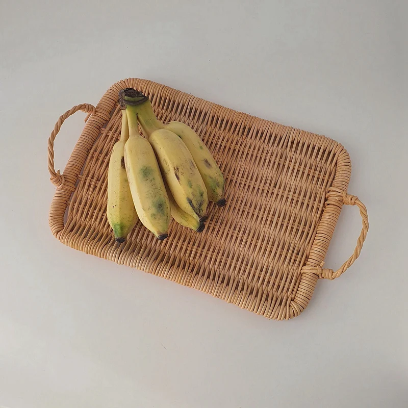Плетеный лоток для фруктов ручной работы, лоток для хранения из ротанга, плетеная корзина, дисплей для еды