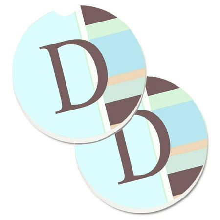 Carolines Treasures CJ1003-DCARC Letter D Initial Monogram - Blue Stripes Set of 2 Cup Holder Car Coasters Large