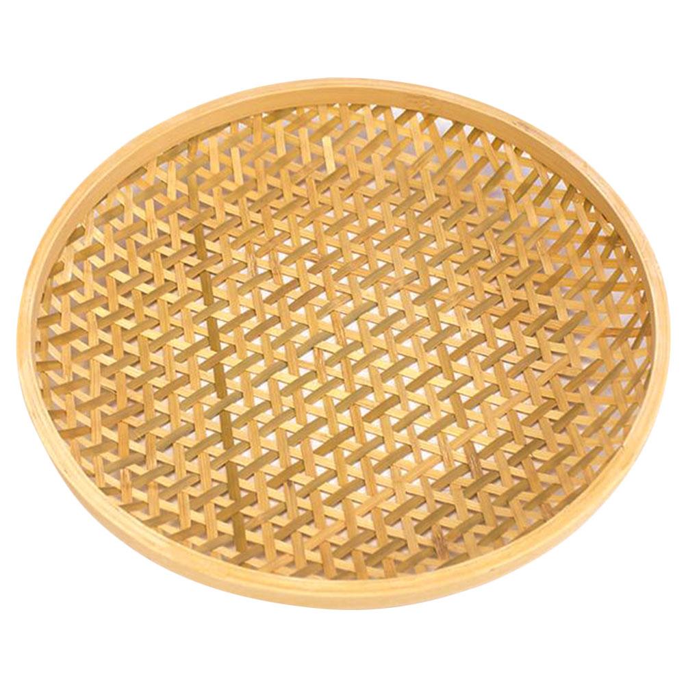 Плетеный поднос, бамбуковая плетеная корзина, место для хранения закусок (большой размер) Домашняя еда Хлеб 27.00X27.00X4.00CM