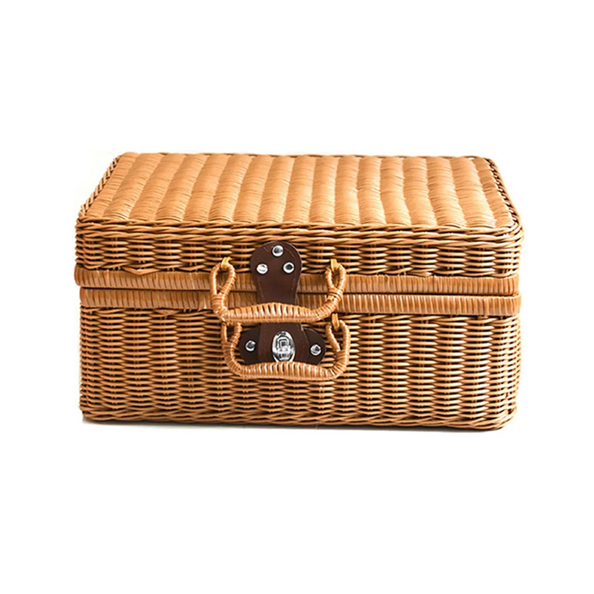 Плетеный чемодан для пикника из искусственного ротанга в стиле ретро