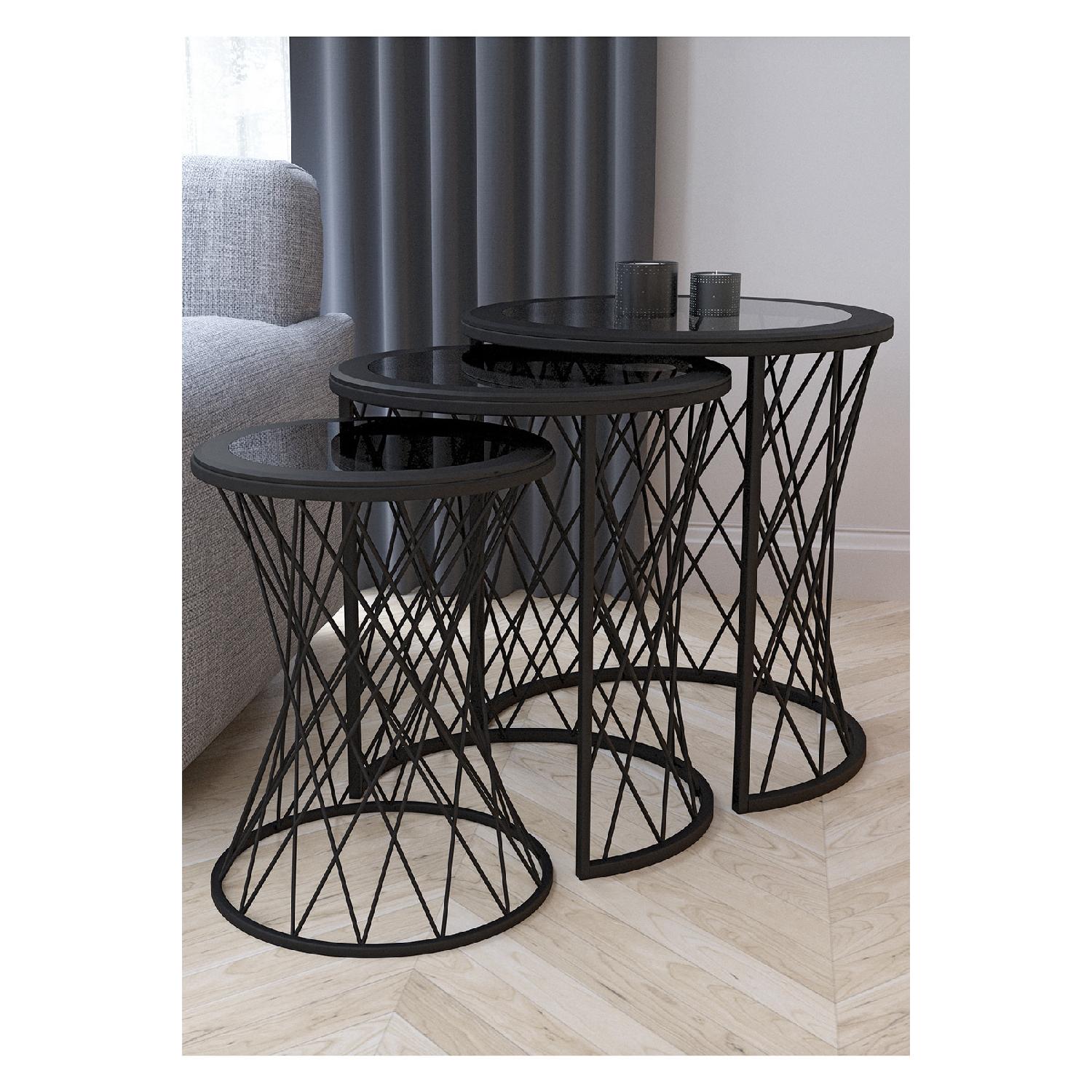 Плетеный 3-местный журнальный столик Nesting, черные ножки, МДФ из дымчатого стекла