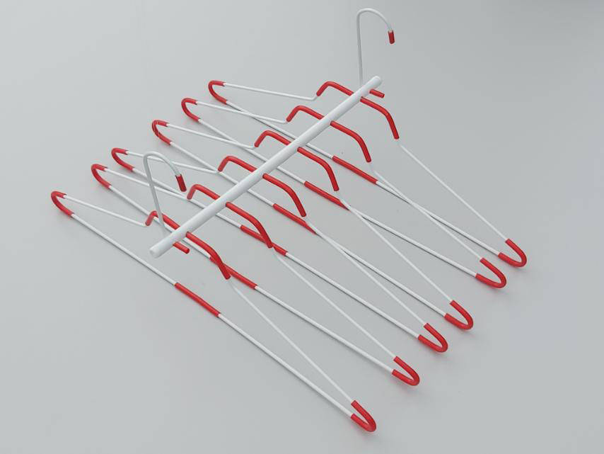 Данная модель плечиков предназначена для развешивания верхней одежды. Изготовлен из металлического каркаса. На одну вешалку можно повесить несколько вещей одновременно, как рубашки, так и брюки. Высота вешалки на одном крючке 47 см, на двух крючках ширина 31 см.