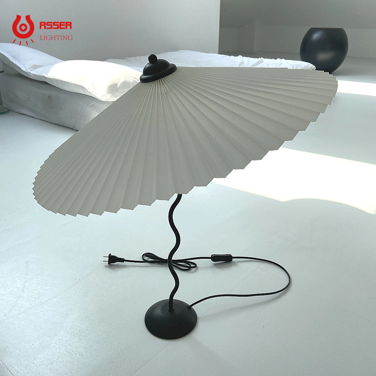 Плиссированная Настольная лампа с зонтиком rгостир, фонарь из кованого железа для спальни, гостиной, прикроватная лампа E14